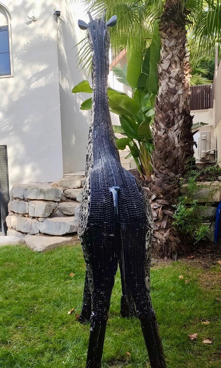 Réalisée à la main à partir de pièces mécaniques authentiques, cette œuvre d’art allie l’élégance naturelle de la girafe et la rigueur technique du métal industriel.